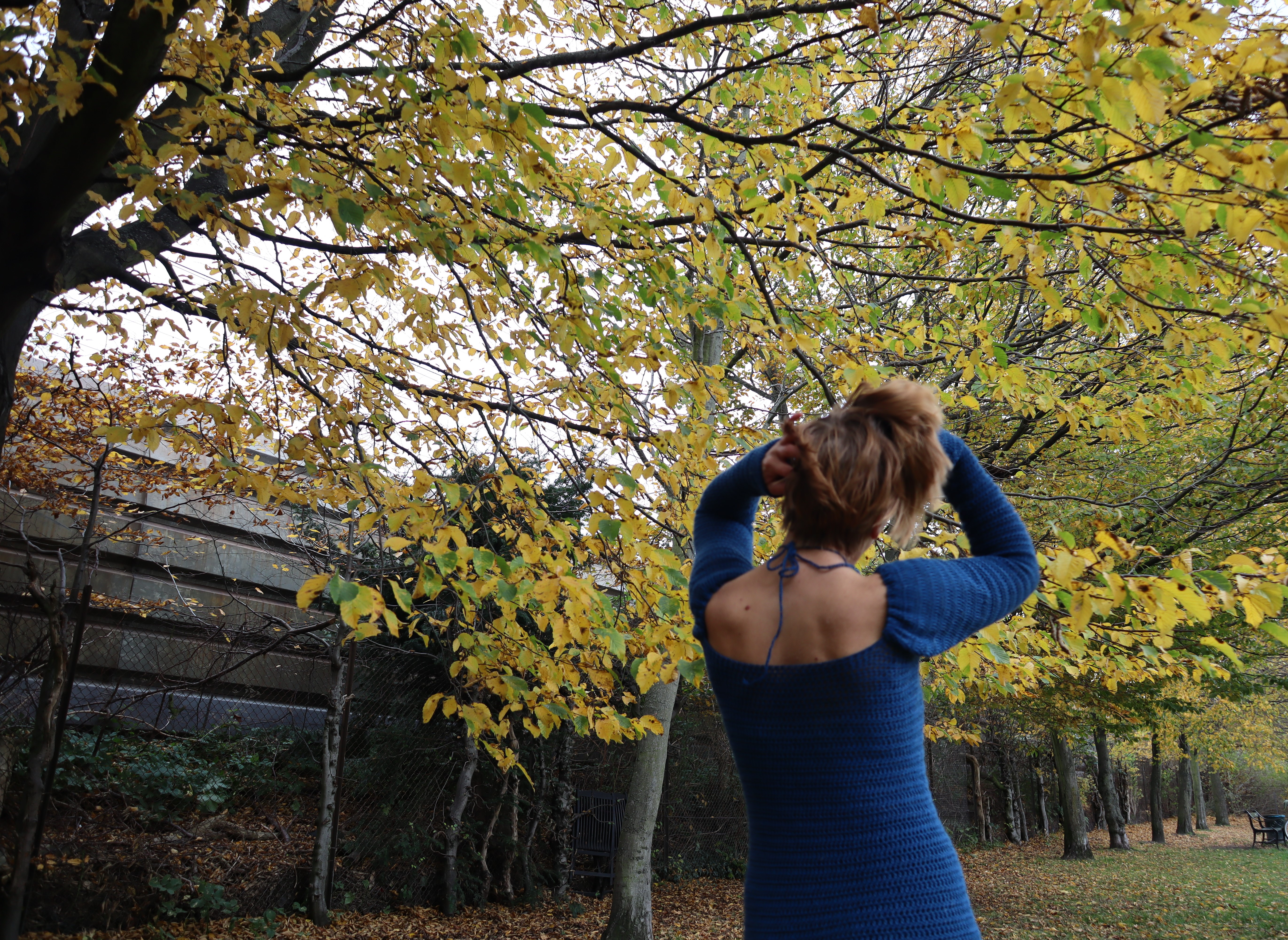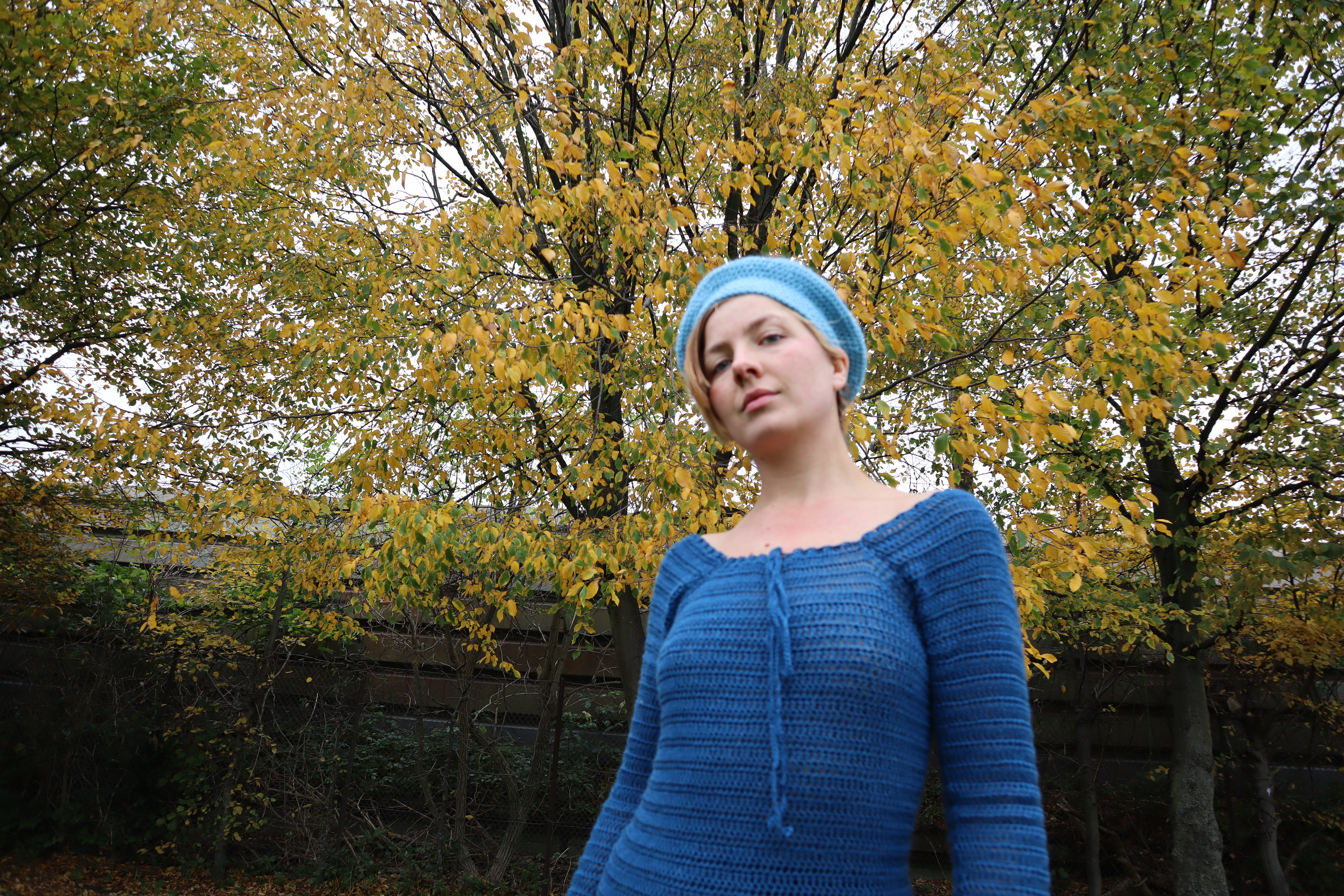 If you make the straps long as mine, you can also wear it as an off-shoulder dress (tying the straps in the neck). The dress is see-through, so it’s a good idea to make it in a dark color, so that you can wear stockings/leggings under and an undershirt! I
