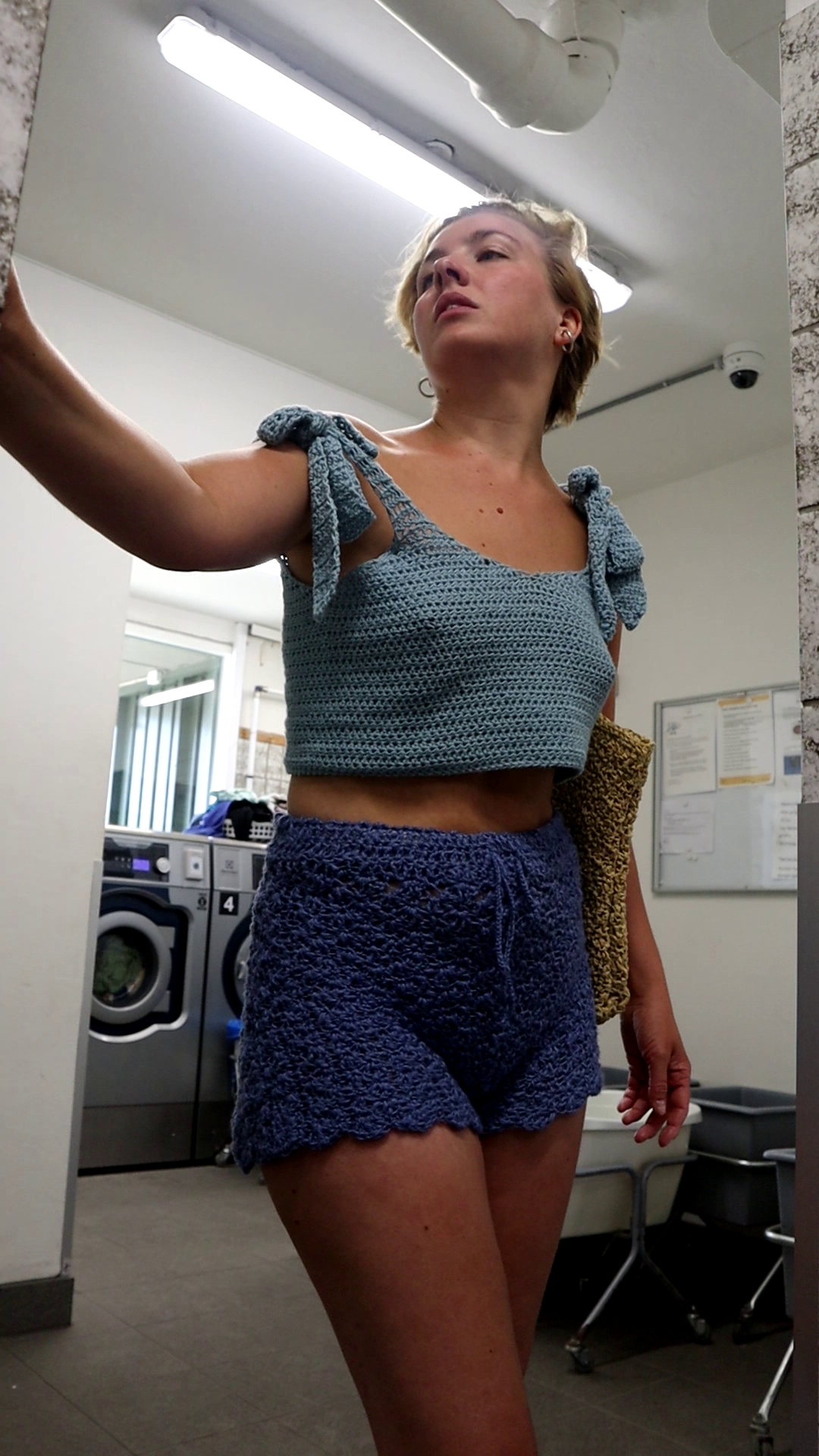 If you want to make the dusty blue version you will need superfine cotton/size 1 (50 g = 160 m) and a 4,5 mm hook. Then you will need to make the straps a bit longer than the pattern says. My straps measured approx. 50 cm each. Making the top wih a bigger hook and cotton will make it fit more loosely.
