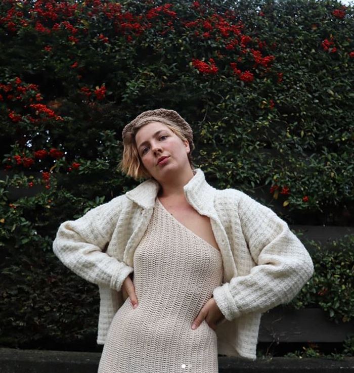 A crochet pattern where you learn how to crochet a ribbed, asymmetrical dress with one strap and a slit. The dress has extra rows on the hip part which means that your hip/bum measurement needs to be bigger than your bust. The crochet pattern follows measurements so you can customize it to your body and get the length, width and shoulder width you want. You can also make it in a short version – it is always good to measue your first row up against your body to see how it fits.