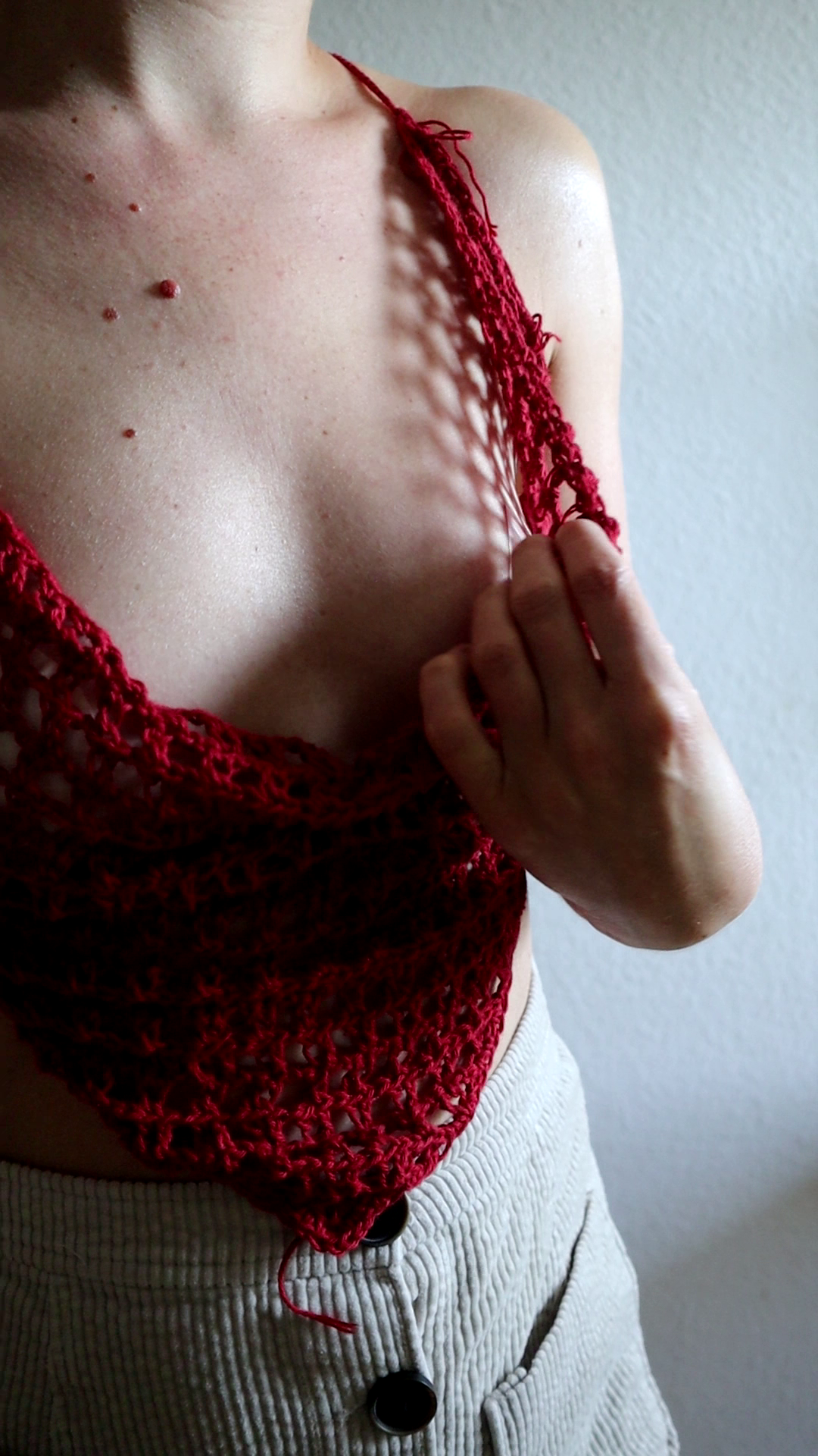 A simple crochet pattern where you learn how to crochet a Y2K cowl neck top with spaghetti straps and open back. You can make the neck in different ways, you’ll be shown two different necks in this pattern. Also check out my youtube video to see how to make the cowl neck: https://www.youtube.com/watch?v=Nq_Qe7_UA78