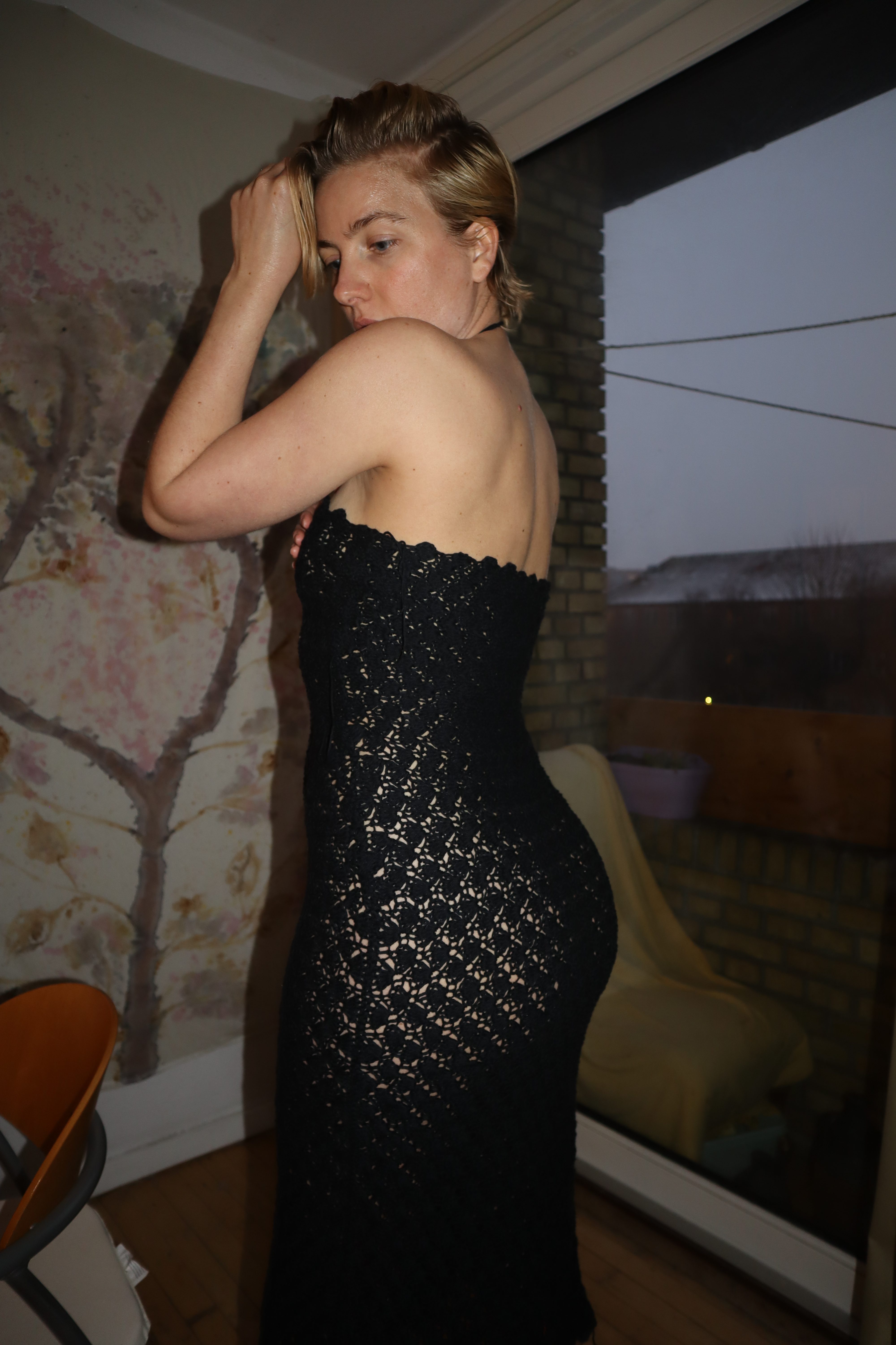 You will also get instructions on how to add a top inside of the top part of the dress if you want it to be less see-through. The pattern is intuitive which means you need to measure up against your own body as you crochet. You can tie the dress differently as seen on the photos, this will create different necklines, unleash your creative intuition and play around with it!