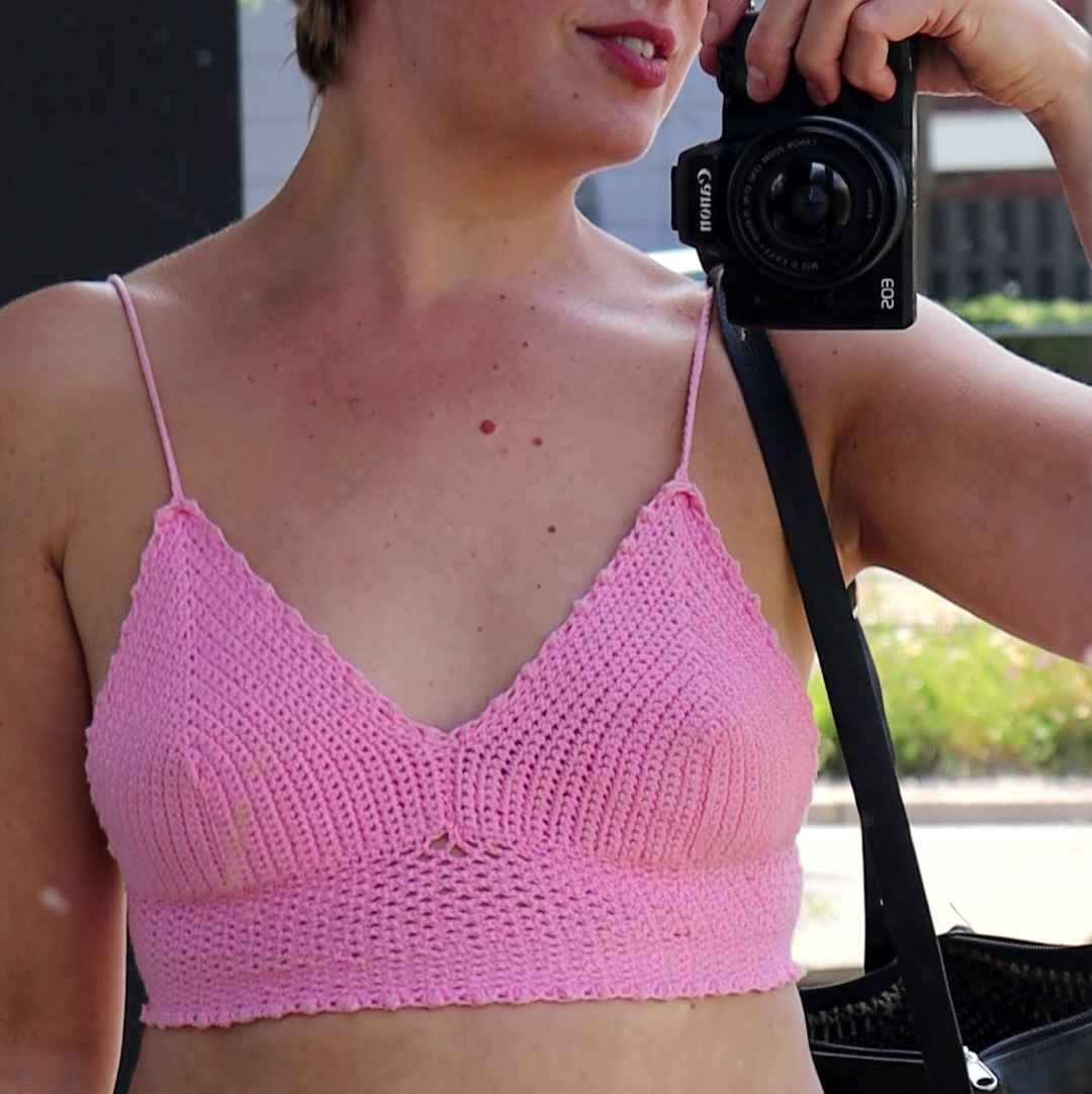 A crochet pattern where you learn how to crochet the Mirabel top. A design protected, unique top inspired by an old lace table cloth from the 70’s. The top can be made in a number of different styles, long short, one or two sets of straps and one color or multicolor. If you want to make stripes make sure to use 3 different colors (or three different yarn balls) thereby you don’t have to break off the yarn but can bring it with you as you go. The pattern is very simple and easy to follow. You will also receive a link to a video (English voiceover), that shows the important steps: like making the first rows on the bra cup and making the stitches on the body (as well as increasing on the body).