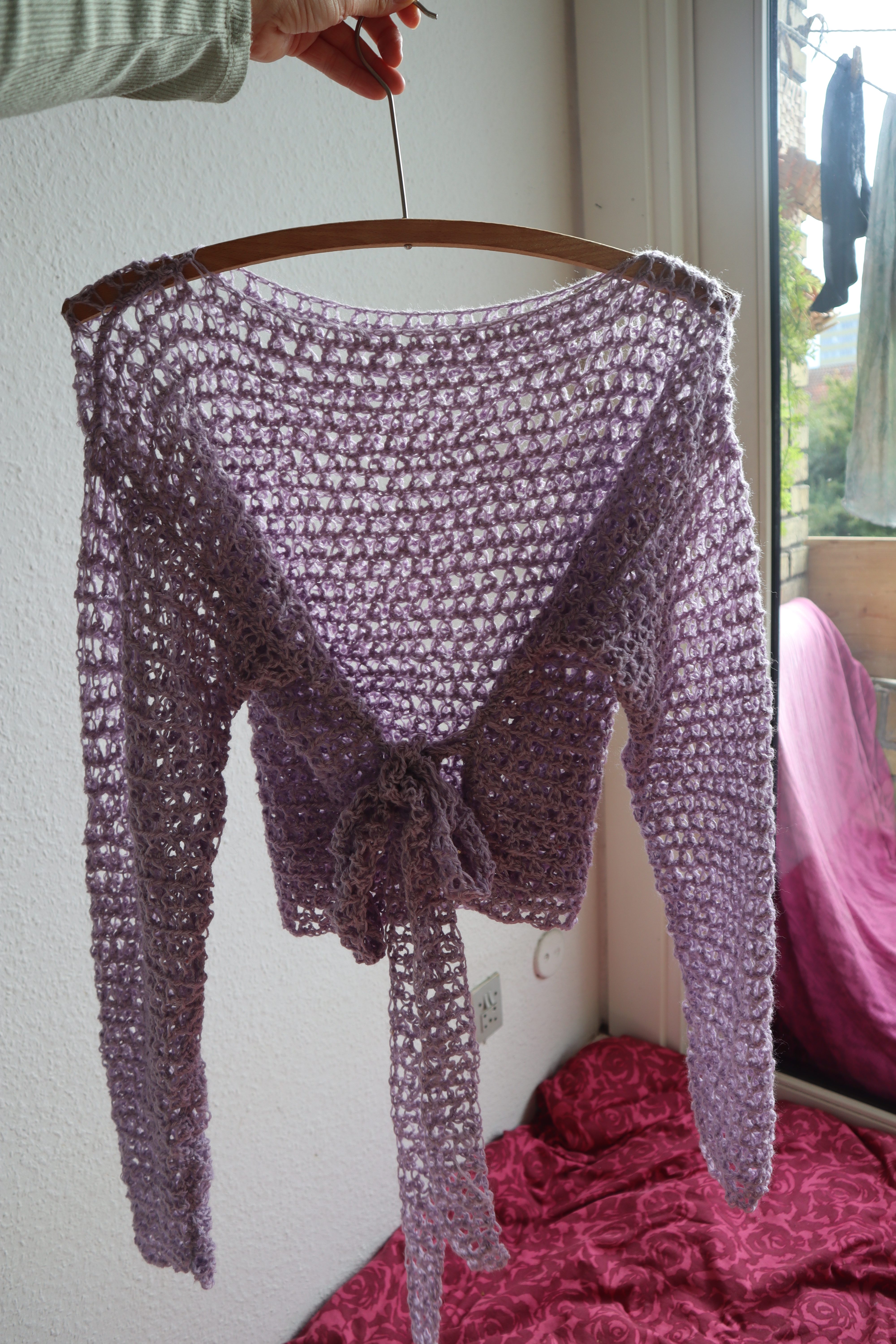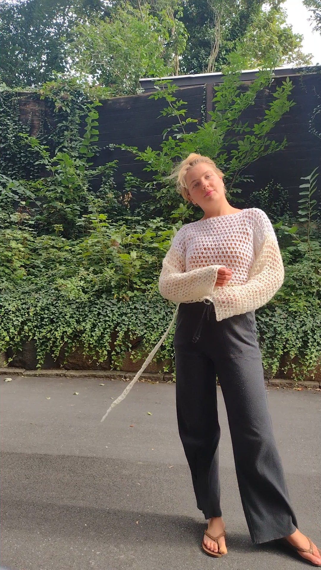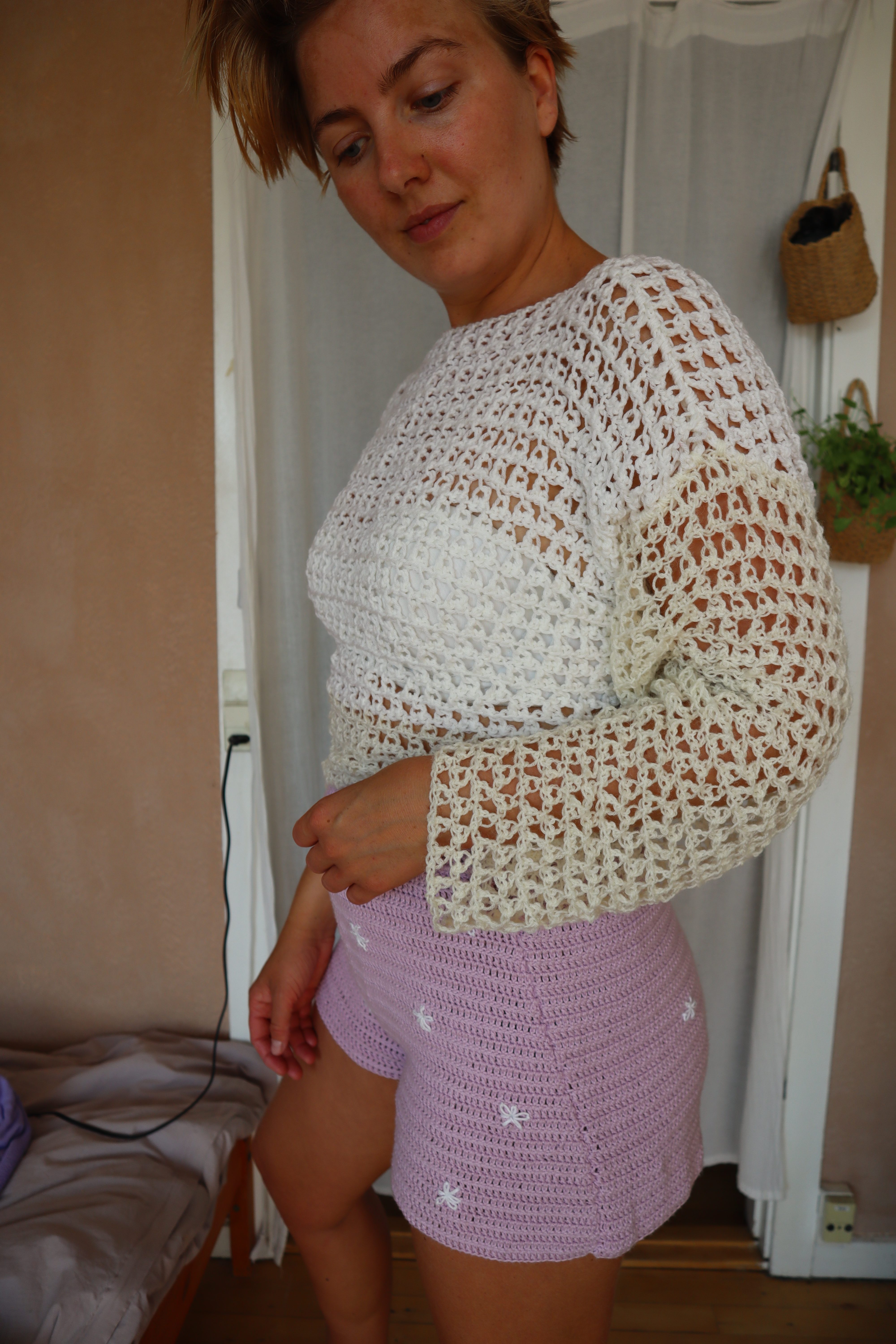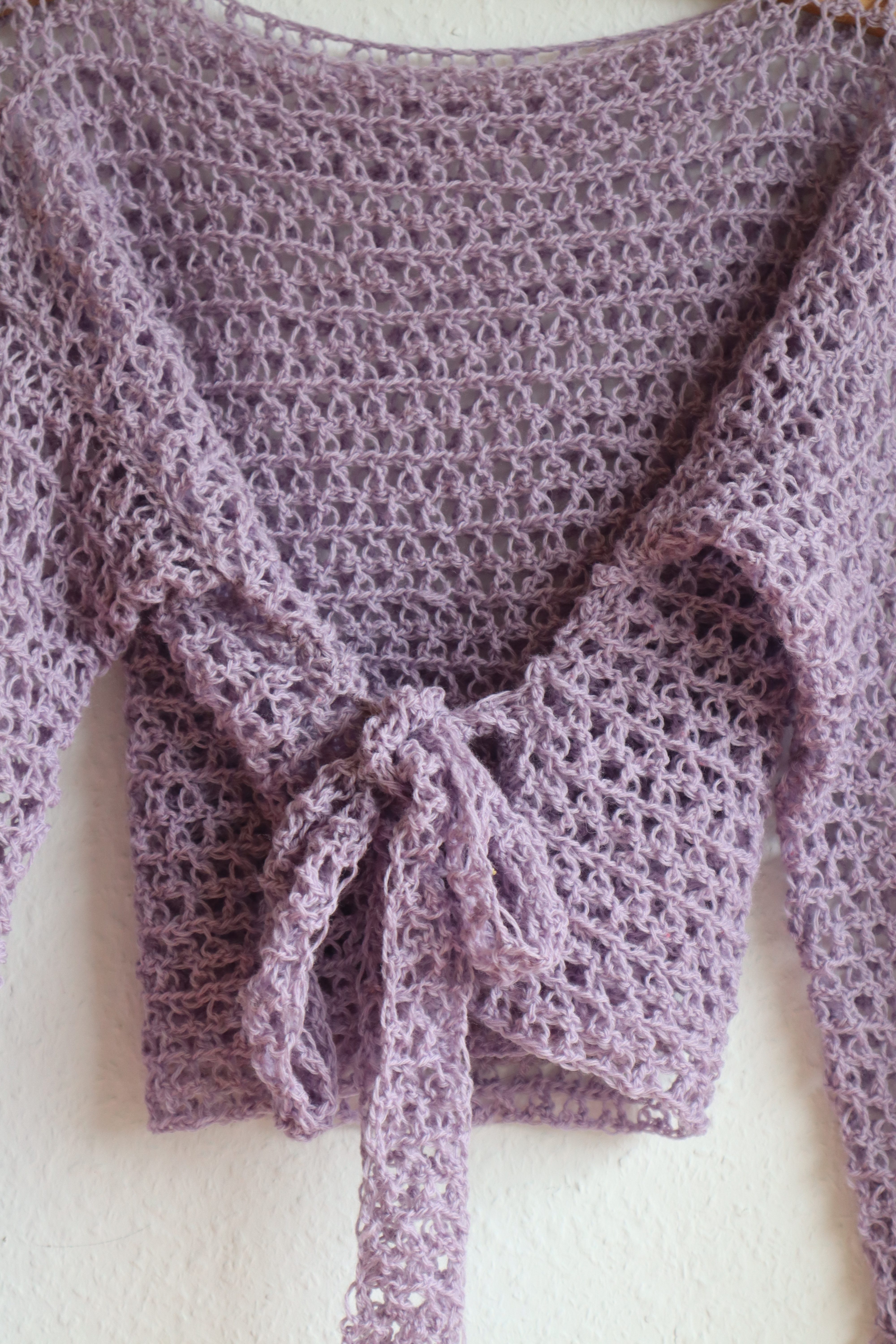 A crochet pattern and video tutorial on how to crochet this lace top. It is a light drape with mesh stitches and a waistband. Perfect for summer in either wool or cotton or in winter for an extra warm layer over long sleeved tops. The lace sweater is made using a unique stitch – the ternion stitch – which is self-invented. This makes this sweater even more special!